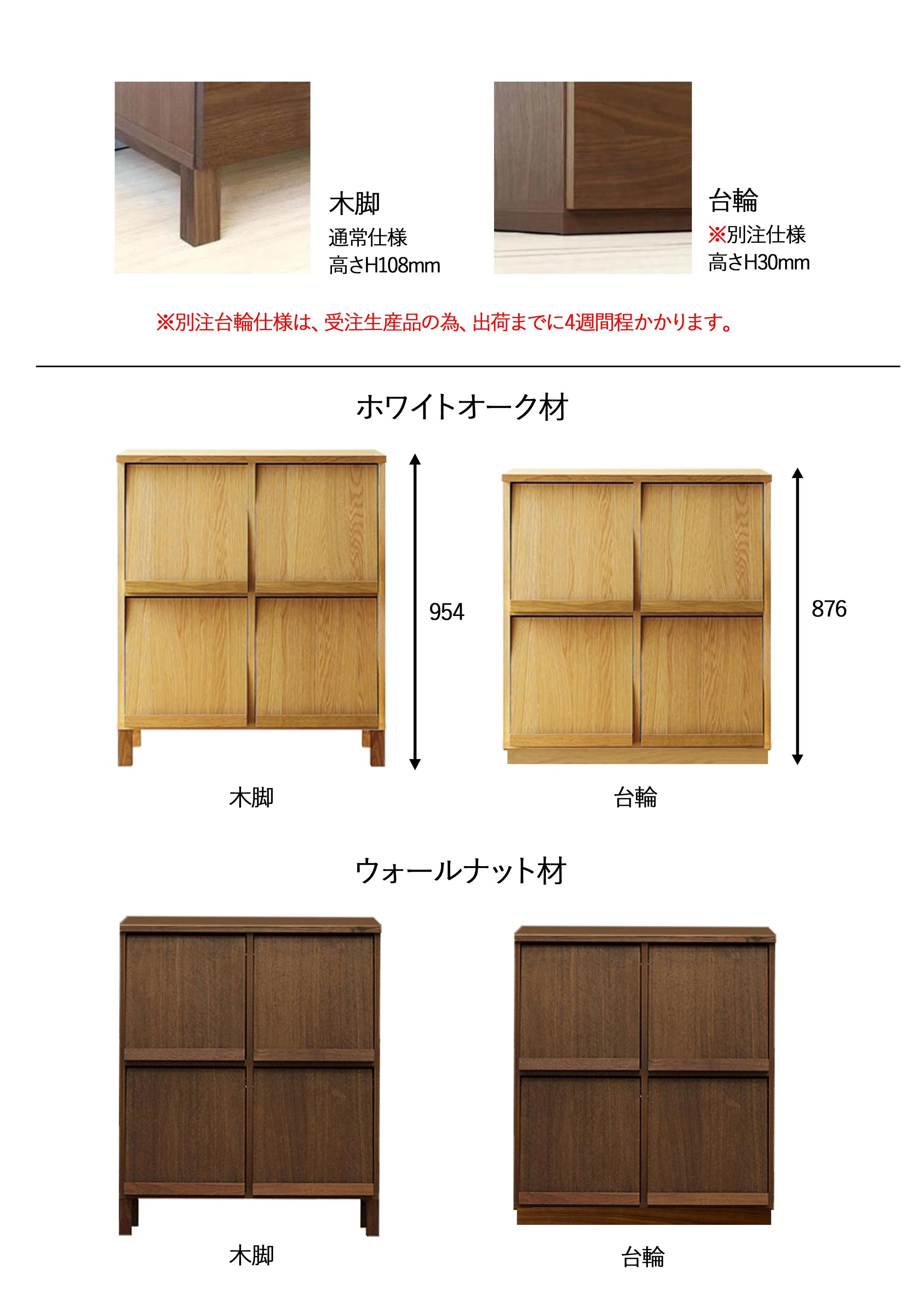 | 素材 | 前板・取手・脚:ウォールナット(ホワイトオーク)無垢材/天板・側板・扉:ウォールナット(ホワイトオーク)突板 |