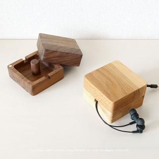 ケース本体と上蓋は内蔵のマグネットで開閉するようになっており、非常に使い易い設計に。デスクの上の散らばりがちなコード類も無垢材の箱にしまえば楽しくなります。