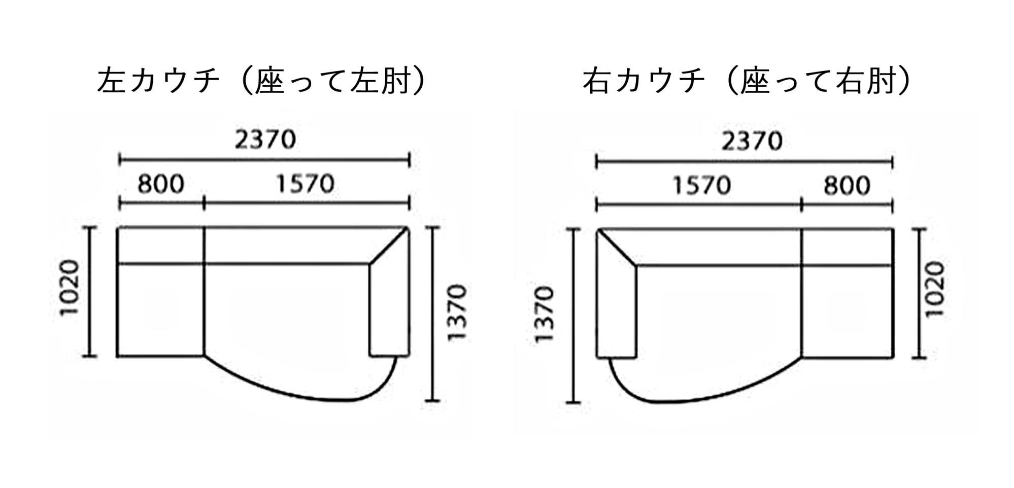 片肘カウチソファのみ:幅1570×奥行1370×高さ570mm/座面高さ350mm
