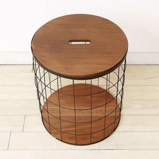 通常はソファ前や横においてサイドテーブルとして使い、円形状の丸天板は取り外し可能なので収納かごに毛布やブランケットなど入れておけます。