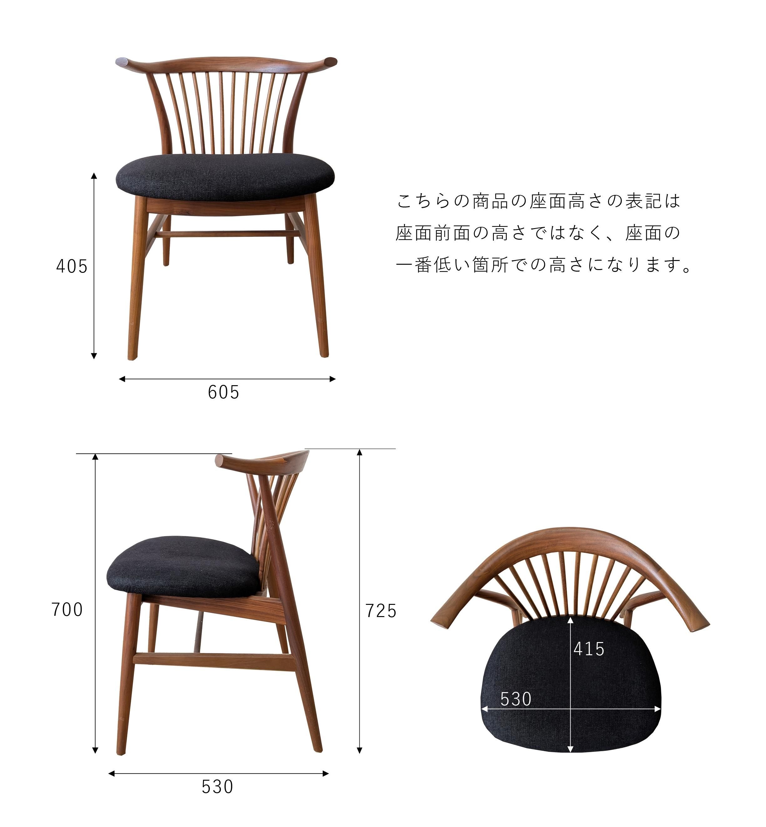 ウォールナット材を贅沢に使ったセミアームタイプのダイニングチェア。